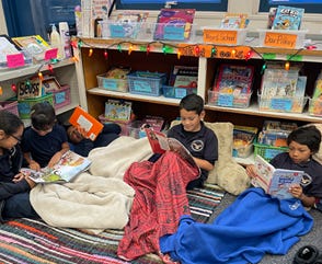 Using their suggestions, we designed the library to be cozy and inviting. It became a well-loved, well-used classroom space.