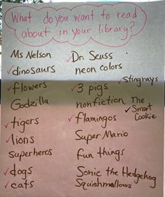 The list was extensive with no slow-down of ideas. They had definite opinions on what they wanted to read. And, since every teaching opportunity is also an assessment one, I reflected on what their thinking revealed about this community of learners and what it might mean for future teaching decisions.