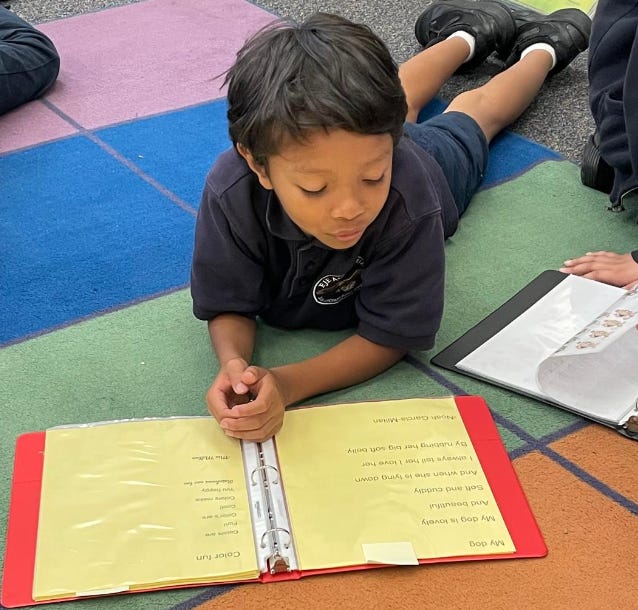 Just like with my third graders, the second graders I’m learning alongside were publishing a self-selected poem at the close of their poetry unit. I was conferring with each poet to ensure their poem was ready for our poetry writing celebration later in the week. Parents were invited and you could sense the students’ excitement in anticipation of sharing their poems.